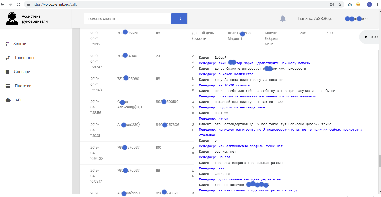 Информацию по вашим переговорам вы можете получать как с сайта, так и в мобильном телефоне - в чате Telegram, или в Вашей CRM.