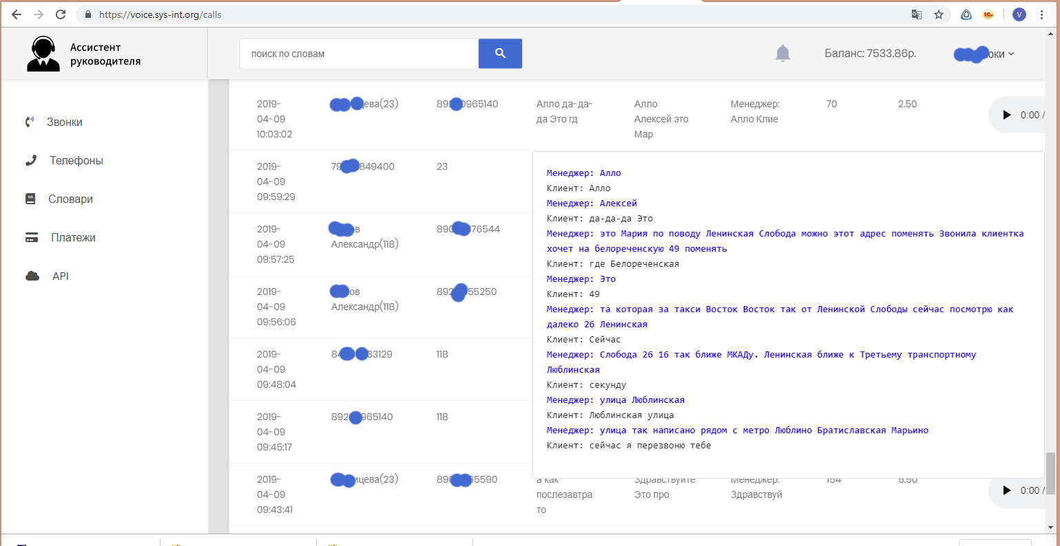 Сервис распознает телефонные разговоры, переводя их в текст.